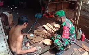 INTIMNEWS.COM, SAMPIT – Babinsa 1015-13/Mentaya Hulu melakukan komunikasi sosial (Komsos) dengan penyandang difable yang mempunyai keahlian untuk membuat cobek dan lesung di Desa Tumbang Kalang, Kecamatan Antang Kalang, Kabupaten Kotawaringin Timur. Minggu, 6 Juni 2021.