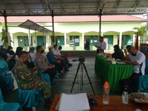 INTIMNEWS.COM, SAMPIT – Danramil 1015-08/Mentawa Baru Ketapang Kapten Arh Sutomo mengikuti kegiatan Vicon Monitoring dan Evaluasi Kegiatan mekanisme operasional lini lapangan Kecamatan MB Ketapang Provinsi Kalimantan Tengah Kabupaten Kotawaringin Timur (Kotim). Di Aula Kehormatan Prajurit Kodim 1015/Sampit. Rabu, 16 Juni 2021.